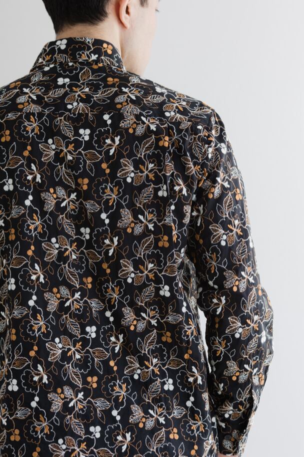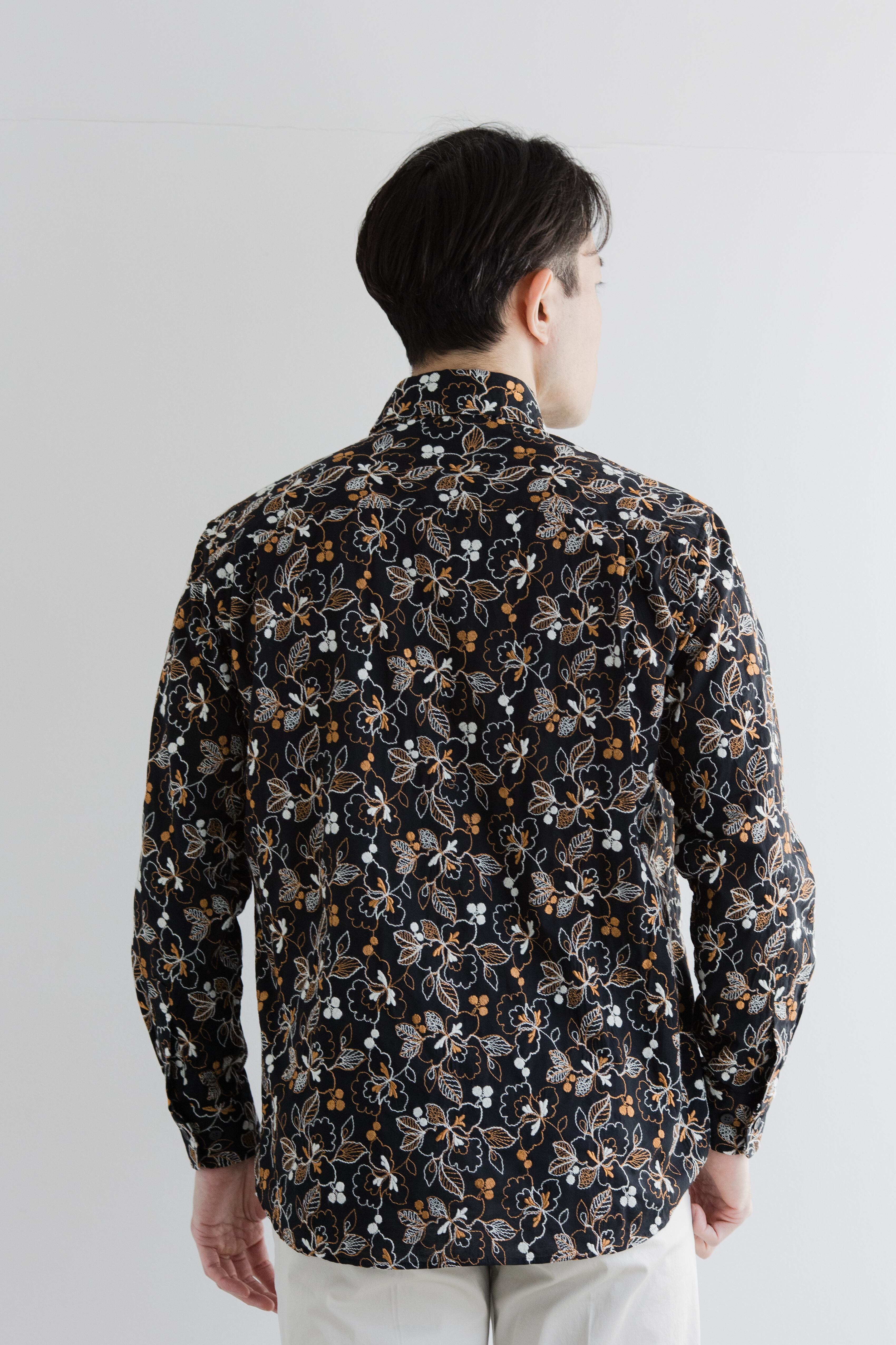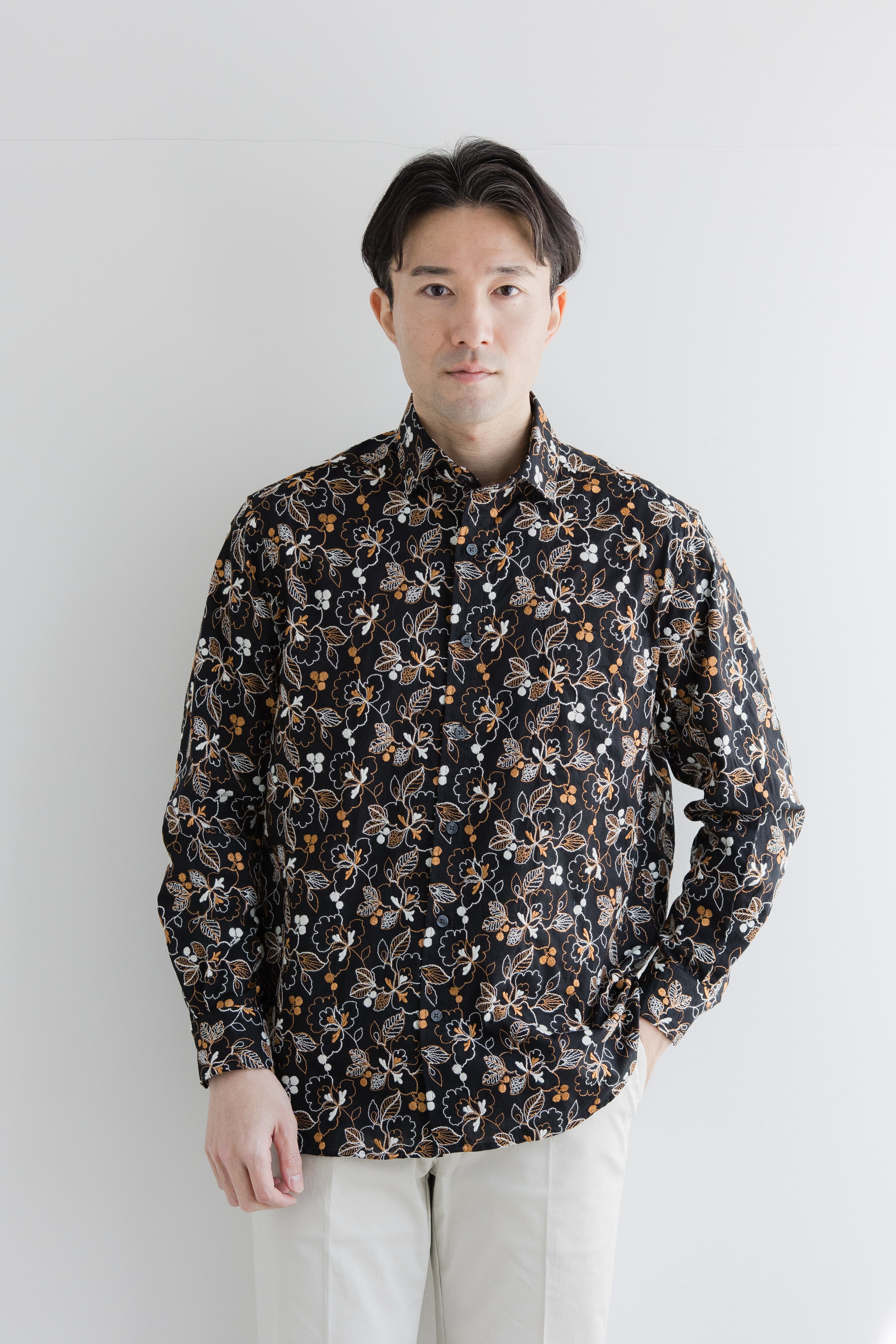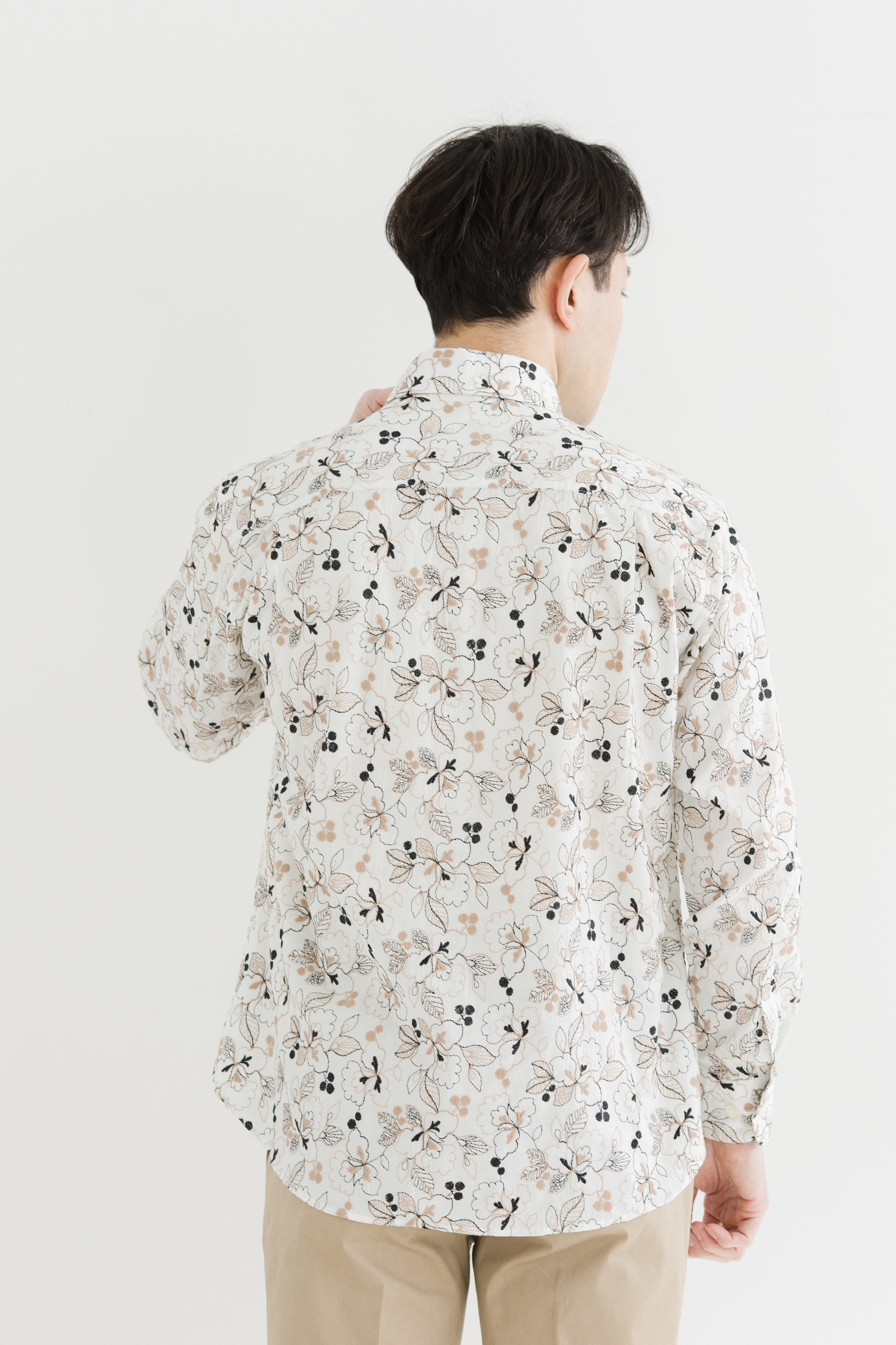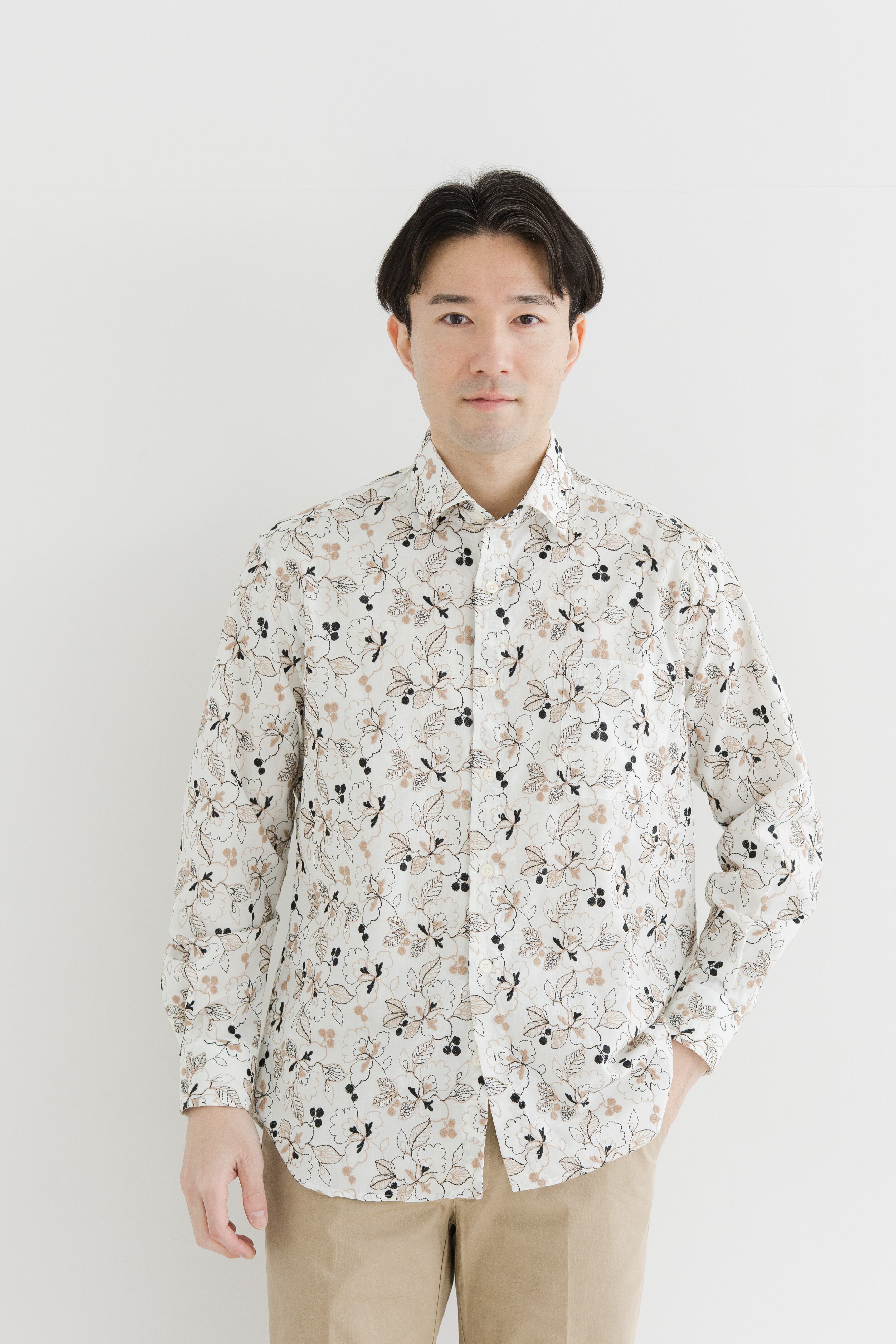 長袖刺繍ワイドカラーシャツ