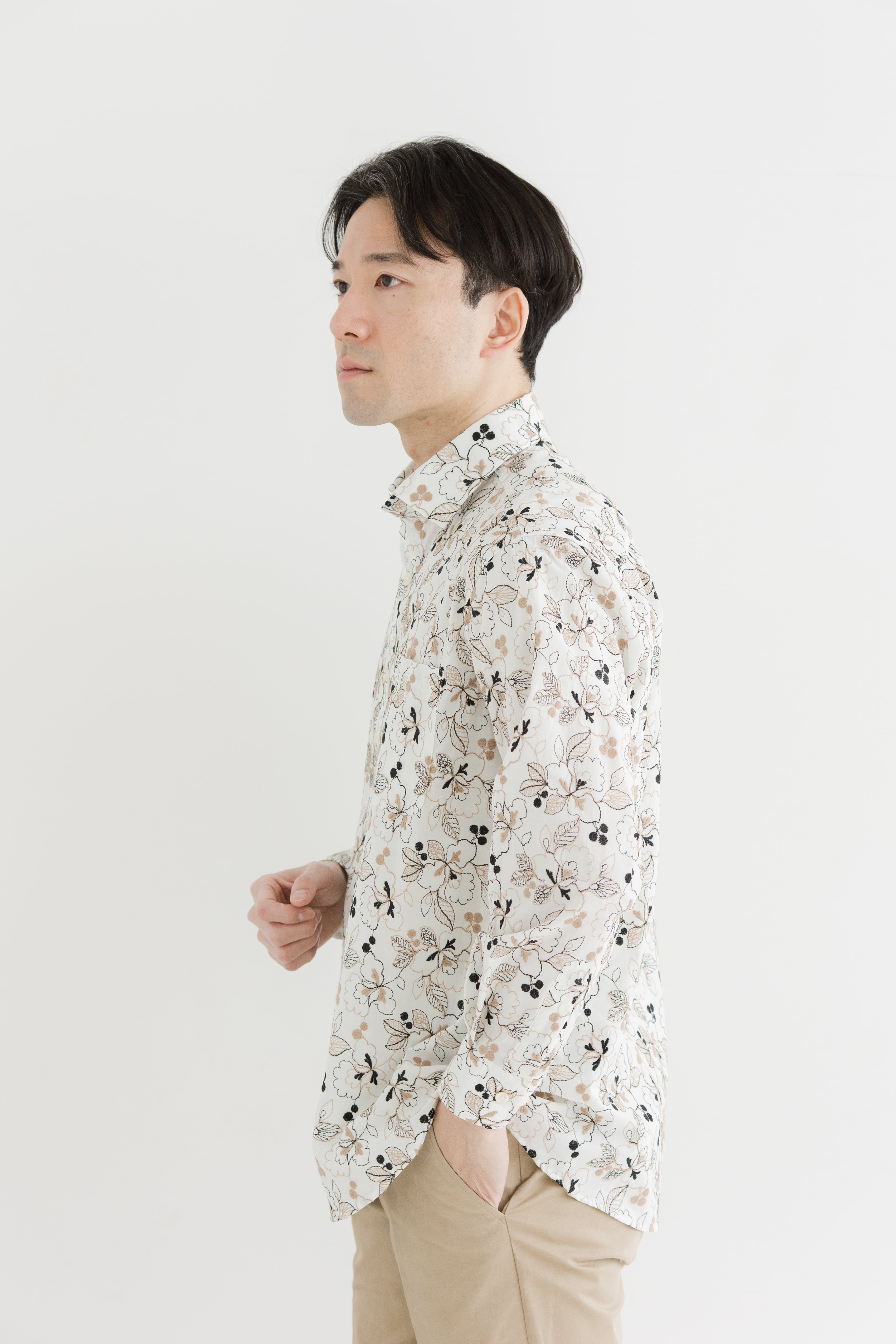 高級感があり、プリント柄のシャツとはまた一味違った表情を楽しめるアイテムです。