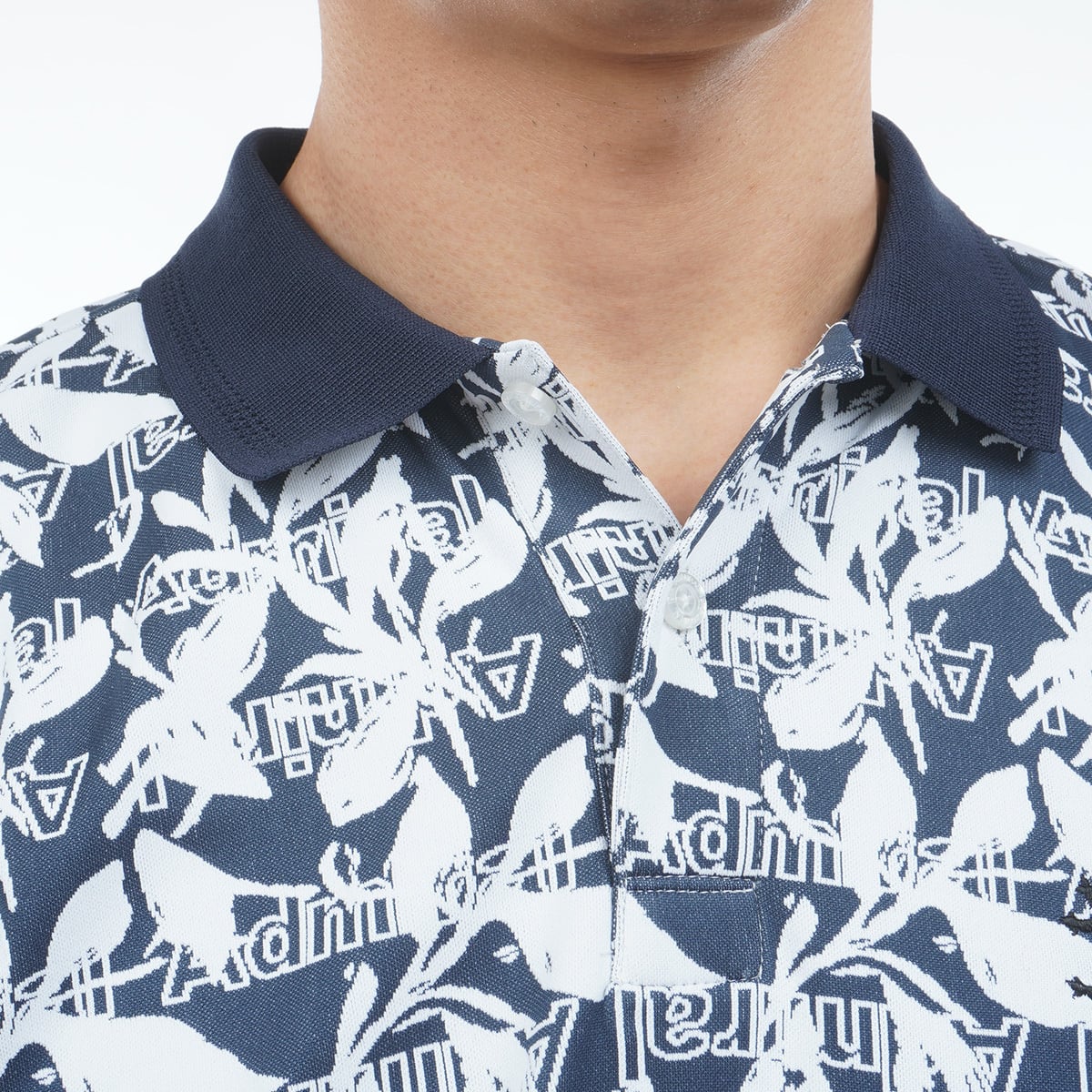 北陸産地で編み上げた高級感のあるリーフジャガード素材を使用したポロシャツ。